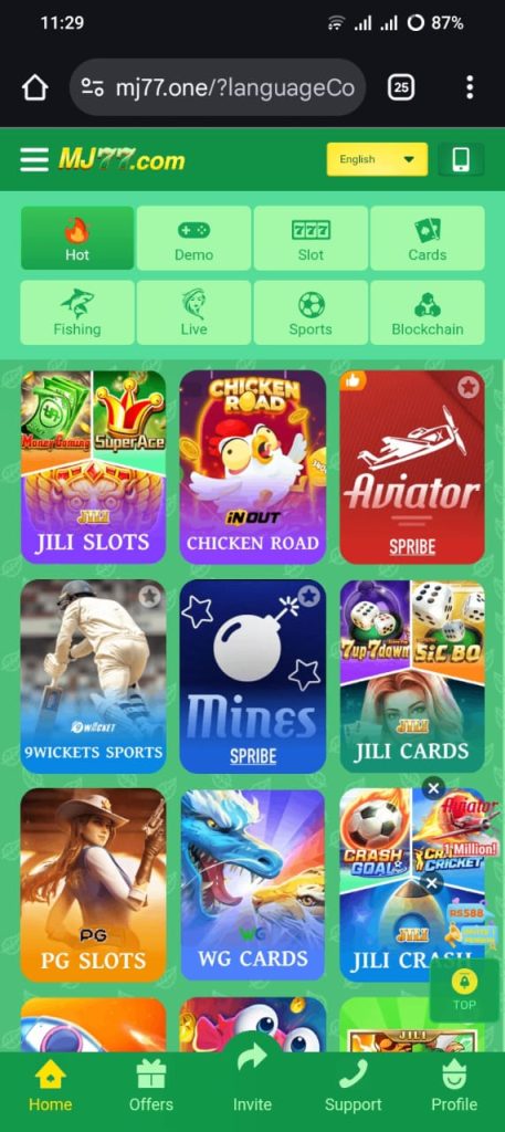 MJ77 offers hundreds of games including slots, card games, fishing games, live casino, sports betting, and crash games. Players can switch games anytime without delays.
